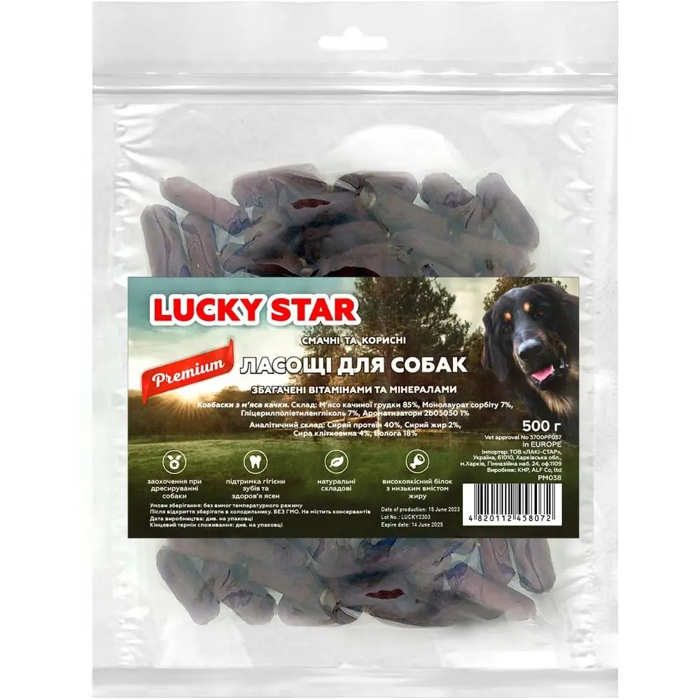 Ласощі для собак Lucky Star Ковбаски з м'яса качки 500 г