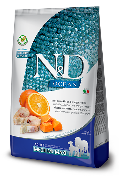 Сухий беззерновий корм Farmina Dog N&D Ocean Cod, Pumpkin & Orange Adult Medium & Maxi для собак з тріскою та гарбузом 12 кг