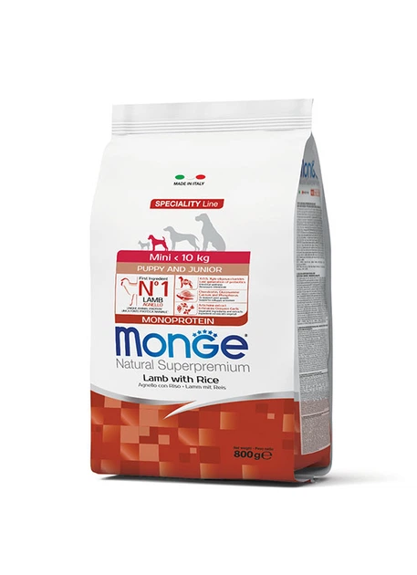 Сухий корм Monge Dog Mini Puppy & Junior для цуценят дрібних порід, з ягням та рисом, 800 г