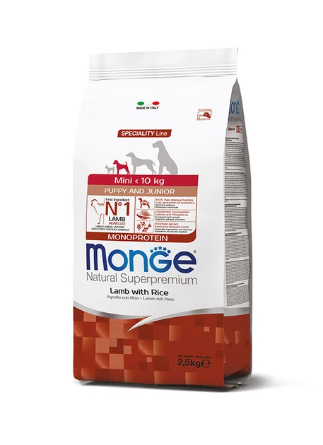 Сухий корм Monge Dog Mini Puppy & Junior для цуценят дрібних порід, з ягням та рисом, 2,5 кг