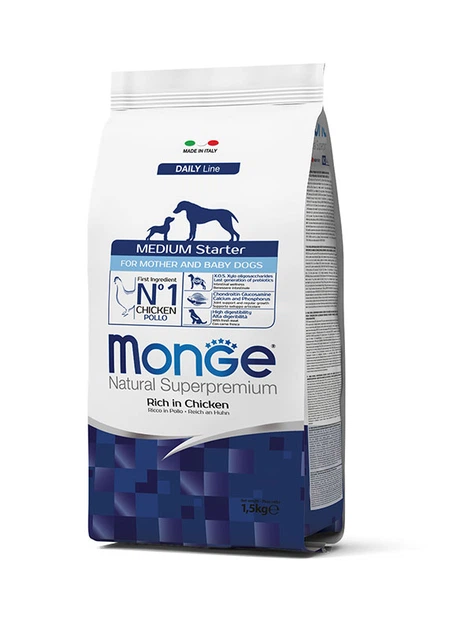Сухий корм Monge Dog Medium Starter для годуючих самок і цуценят середніх порід з куркою 1,5 кг
