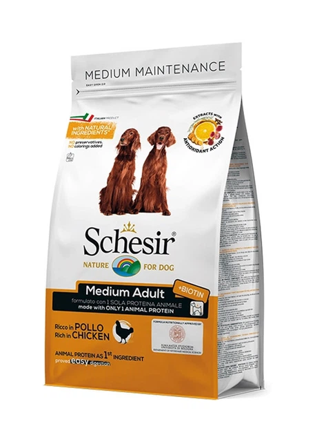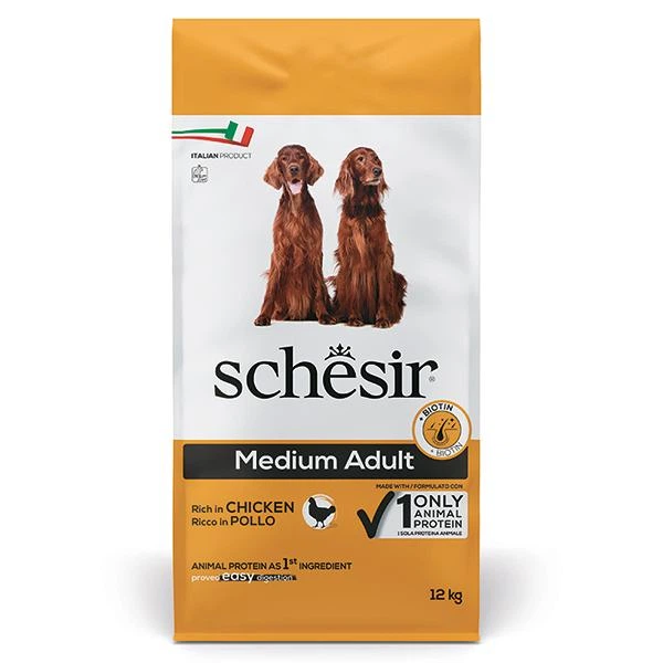 Schesir Dog Medium Adult Chicken ШЕЗИР ДОРОСЛИЙ СЕРЕДНІХ КУРИЦЯ сухий монопротеїновий корм для собак середніх порід, 12 кг