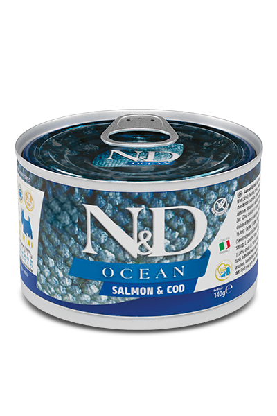 Вологий беззерновий корм Farmina Dog Grain Free N&D Ocean Salmon & Cod Adult Mini для дорослих собак дрібних порід з лососем