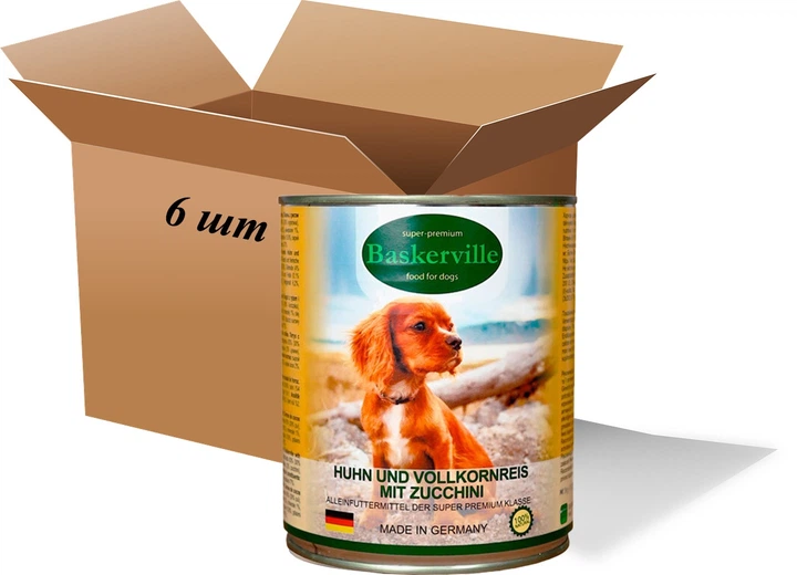 Вологий корм для собак Вaskerville Півень з рисом та цукіні, 800 г (6 шт. упаковка)