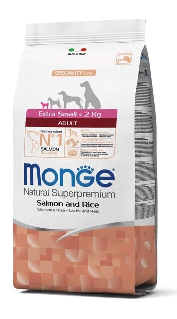 Сухий корм для собак мініатюрних порід Monge Dog Extrasmall Adult лосось з рисом Вага: 0.8 кг.