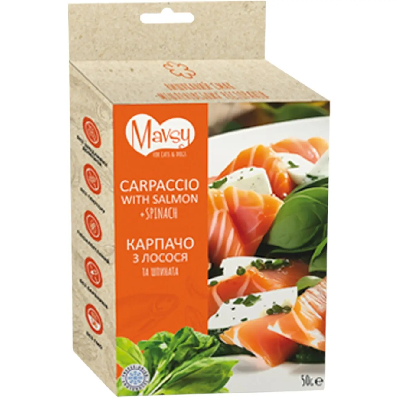 Ласощі для собак Mavsy від 3 місяців карпачо з лосося та шпинатом 50 г