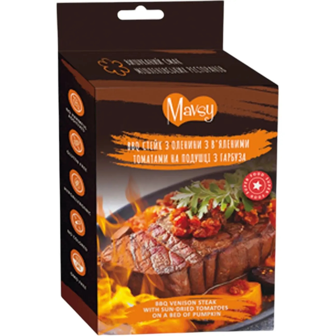Ласощі для собак Mavsy від 3 місяців стейк з оленини з в'яленими томатами на подушці з гарбуза 100 г