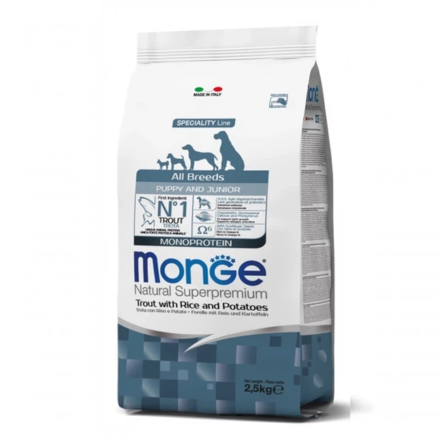 Сухий корм Monge Dog All breeds Puppy & Junior для цуценят всіх порід з фореллю та рисом 2.5 кг