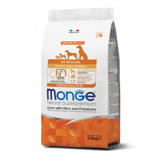 Сухий корм Monge Dog All breeds Puppy & Junior для цуценят всіх порід з качкою та рисом 2.5 кг