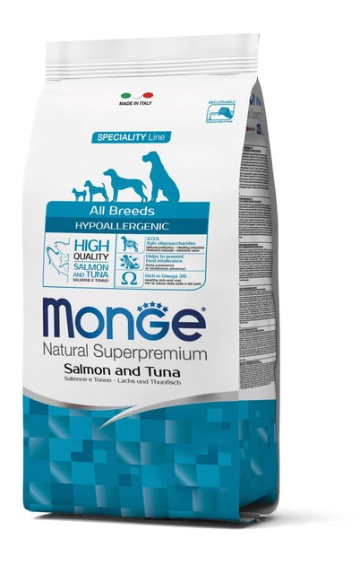 Сухий корм Monge Dog All breeds Hypoallergenic для дорослих собак усіх порід, з лососем та тунцем, 15 кг