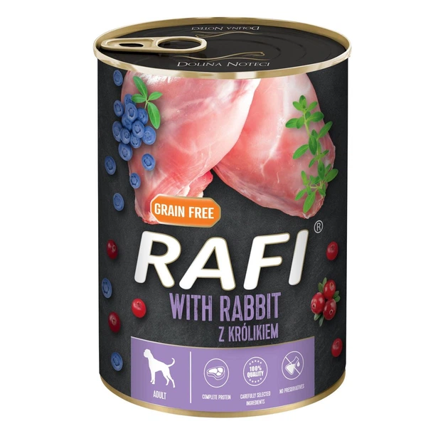 Консерва для дорослих собак Dolina Noteci RAFI паштет кролик, лохина і журавлина, 400 г