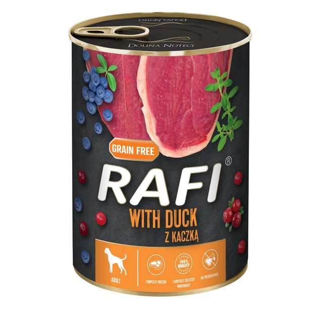 Консерва для дорослих собак Dolina Noteci RAFI паштет качка, лохина і журавлина, 800 г