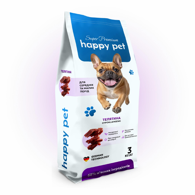 Гіпоалергенний сухий корм для собак середніх та малих порід Happy Pet з телятиною 3 кг