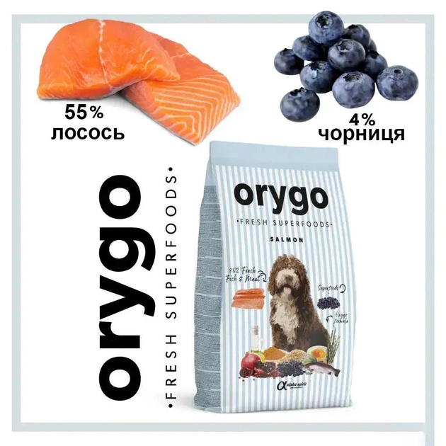 ORYGO Salmon напіввологий корм для дорослих собак всіх порід лосось та чорниця 8 кг
