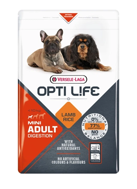 Сухий корм Versele-Laga Opti Life Adult Digestion Mini для собак малих порід з чутливим травленням з ягням та лососем 2.5 кг