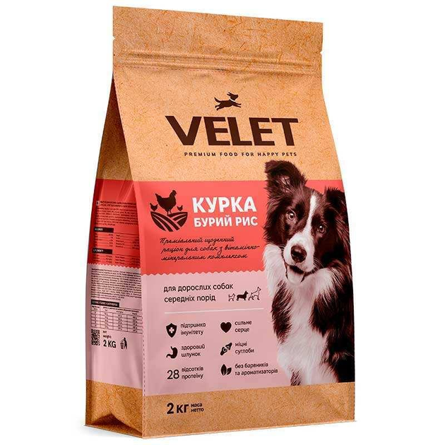 Velet (Велет) - Сухий корм "Куриця та бурий рис" для дорослих собак середніх порід. 2 кг.