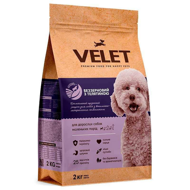 Velet (Велет) - Сухий корм "Беззерновий з телятиною" для дорослих собак малих порід. 2кг.