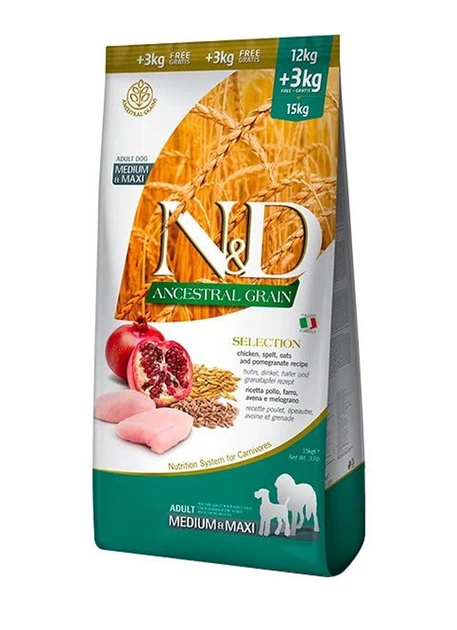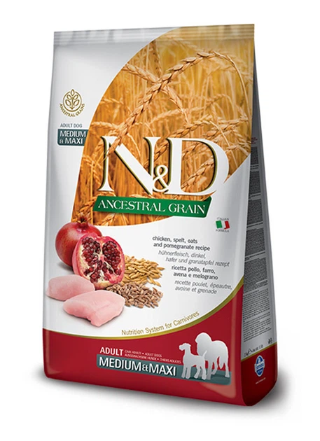 Низькозерновий сухий корм Farmina N&D Low Grain Dog Chicken & Pomegranate Adult Medium&Maxi з куркою та гранатом для доросли