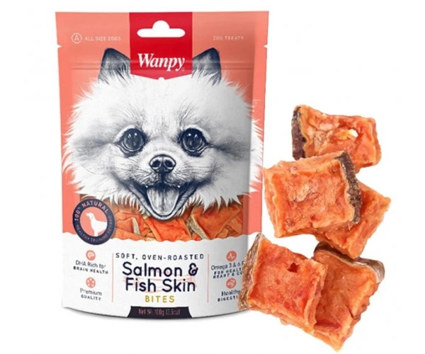 Ласощі для собак Wanpy м'які шматочки лосося, 100 г