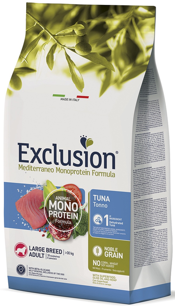 Повнораціонний сухий корм Exclusion Adult Tuna Large Breed з тунцем для дорослих собак великих порід 12 кг
