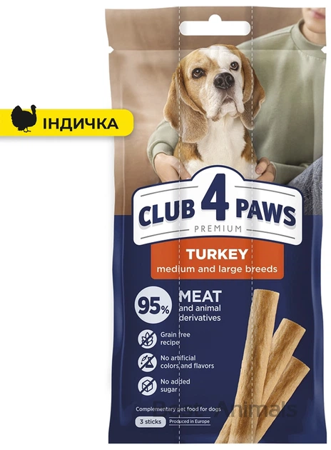 Ласощі для собак Club 4 Paws м'ясна паличка індичка для середніх і великих порід 3 шт 20 г