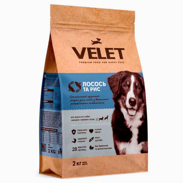 Velet (Велет) – сухий корм "Лосось та рис" для дорослих собак середніх та великих порід. 2кг.
