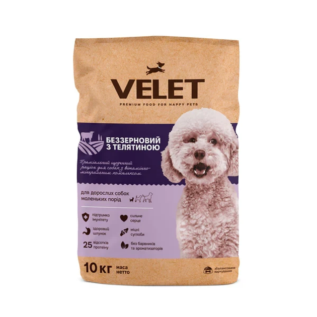 Velet (Велет) - Сухий корм "Беззерновий з телятиною" для дорослих собак малих порід. 10 кг.