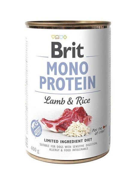 Консервований корм Brit Mono Protein для собак з ягнятком та темним рисом 400 г х 6 шт