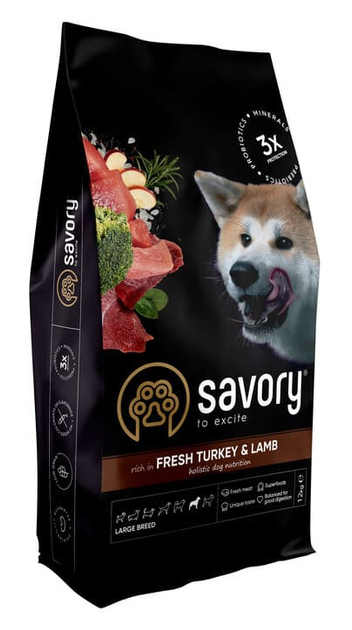 Сухий корм для собак великих порід Savory Adult Large Breed Fresh Turkey & Lamb з індичкою та ягням 12 кг