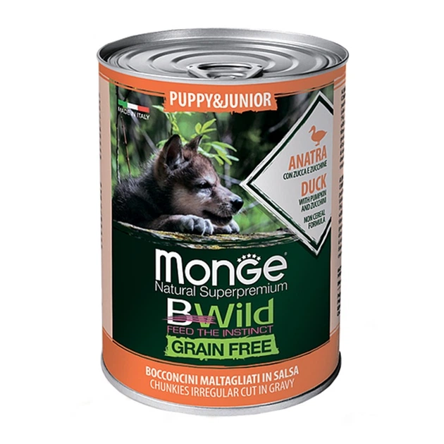 Консерва для цуценят Monge (Монже) BWild Grain Free Puppy & Junior з качкою, гарбузом та цукіні 400 г