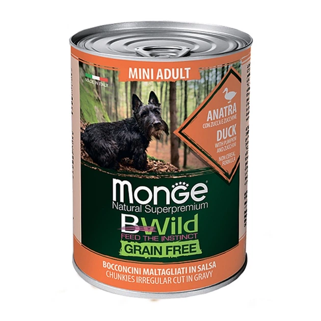 Консерва для собак маленьких порід Monge (Монже) BWild Grain Free Mini Adult Turkey with Pumpkin and Zucchini з качкою, гарб