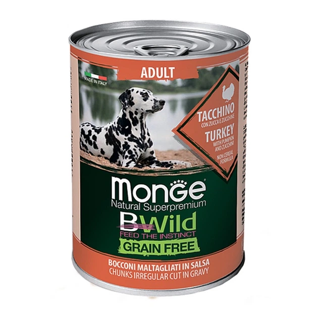 Консерва для собак Monge (Монже) BWild Grain Free Adult Turkey with Pumpkin and Zucchini з качкою, гарбузом та цукіні 400 г