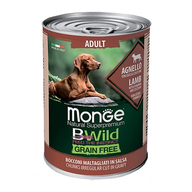 Консерва для соба Monge (Монже) BWild Grain Free Adult Lamb with Pumpkin and Zucchini з ягням, гарбузом та цукіні 400 г