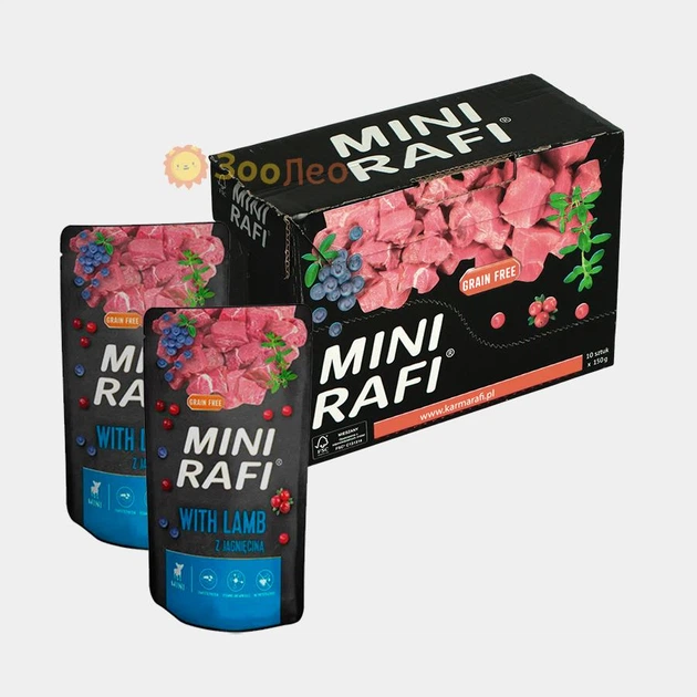 Вологий корм для собак дрібних порід Dolina Noteci RAFI Mini, з ягням, пауч, 150 г (10 шт)