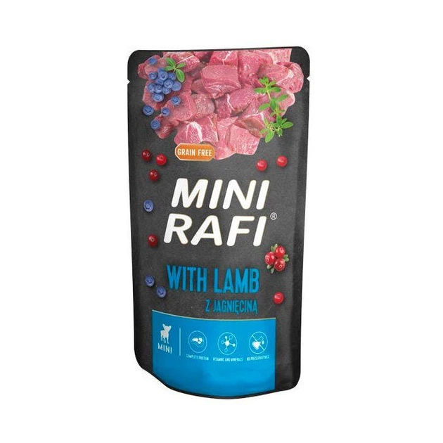Вологий корм для собак дрібних порід Dolina Noteci RAFI Mini, з ягням, пауч, 150 г