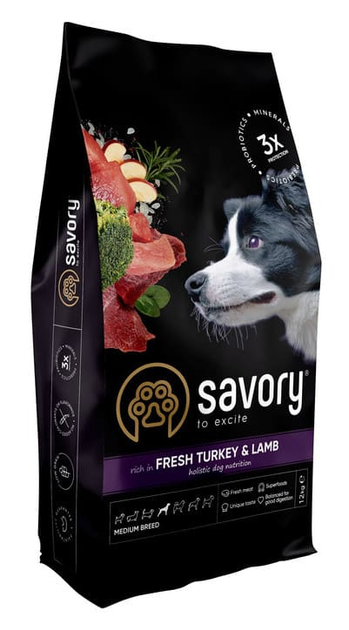 Сухий корм для собак середніх порід Savory Adult Medium Breed Fresh Turkey & Lamb з індичкою та ягням 12 кг
