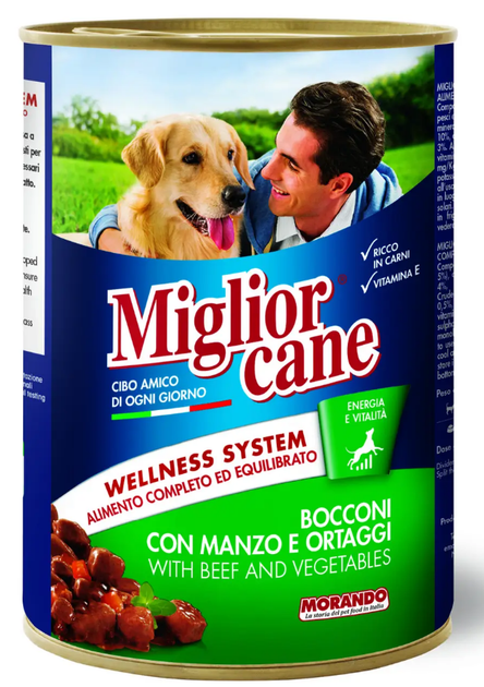 Вологий корм для дорослих собак Morando Migliorcane з яловичиною та овочами (вигляді шматочків) - 405 г