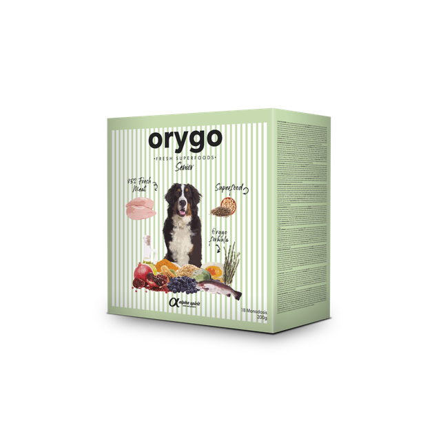 Корм для дорослих старіючих собак ORYGO Senior з курятиною та бобовими напіввологий (200г х18) 3,6 кг (ORYGD030510046)