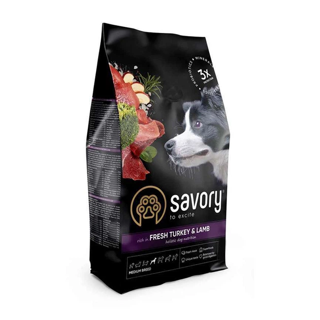 Сухий корм Savory Medium Breed rich in Fresh Turkey & Lamb для дорослих собак середніх порід 12 кг (індичка та ягня)