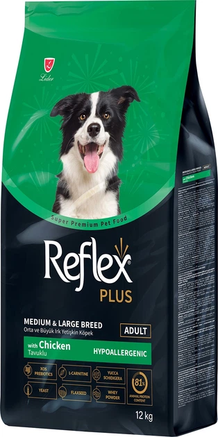 Повноцінний та збалансований сухий корм для собак середніх та великих порід Reflex Plus Medium & Large Breed Adult з куркою