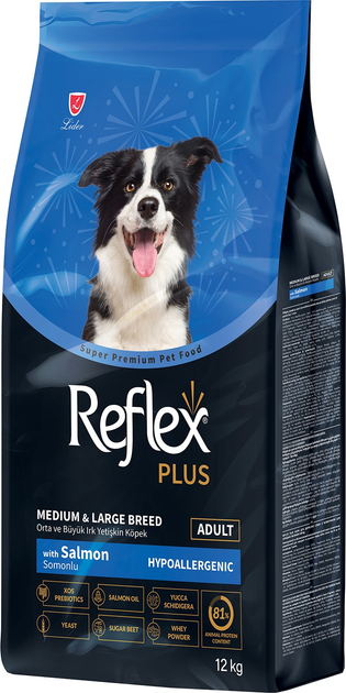 Повноцінний та збалансований сухий корм для собак середніх та великих порід Reflex Plus Medium & Large Breed Adult з лососем