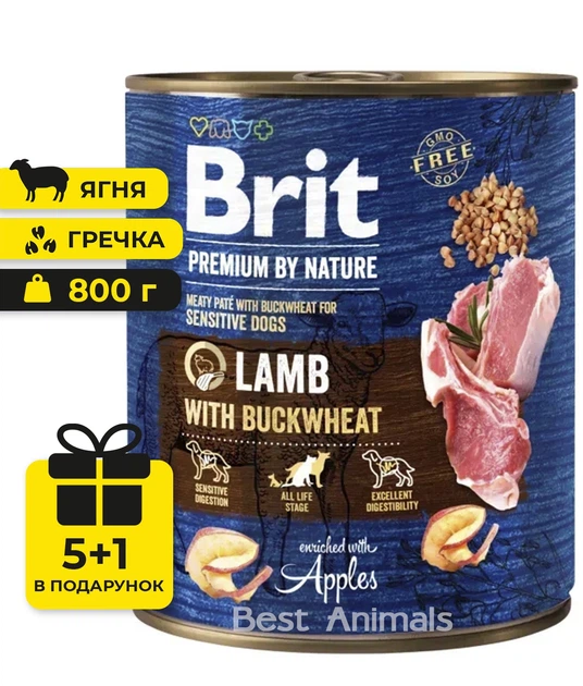 Вологий корм з ягням і гречкою Brit Premium Lamb with Buckwheat консерва для собак 800 г 5+1 шт (8595602538638)