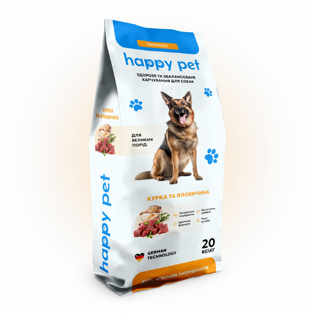 Сухий корм для собак великих порід Happy Pet з куркою та яловичиною 20 кг