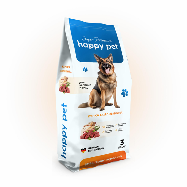 Сухий корм для собак великих порід Happy Pet з куркою та яловичиною 3 кг