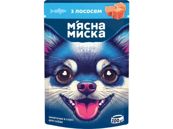 Корм для собак М'ЯСНА МИСКА Пауч 100г шматочки в соусі для собак з лососем