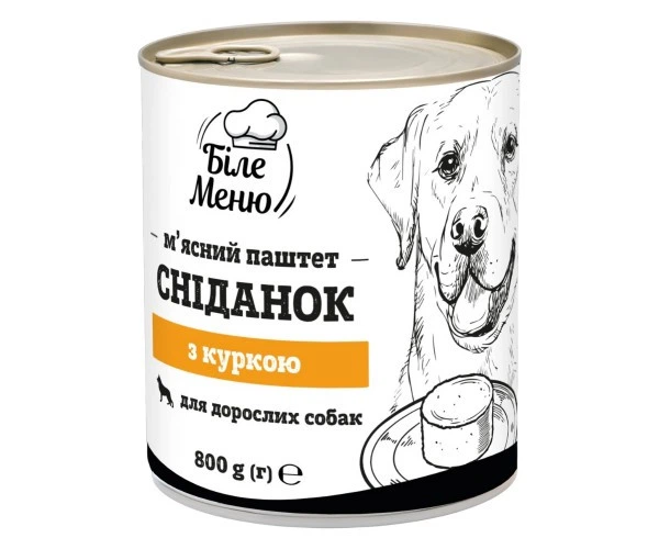Паштет для собак М'ясний Сніданок з куркою Біле Меню 800 г