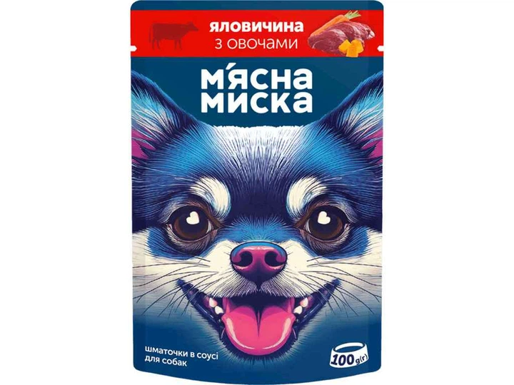 Корм для собак М'ЯСНА МИСКА Пауч 100г шматочки в соусі для собак яловичина з овочами