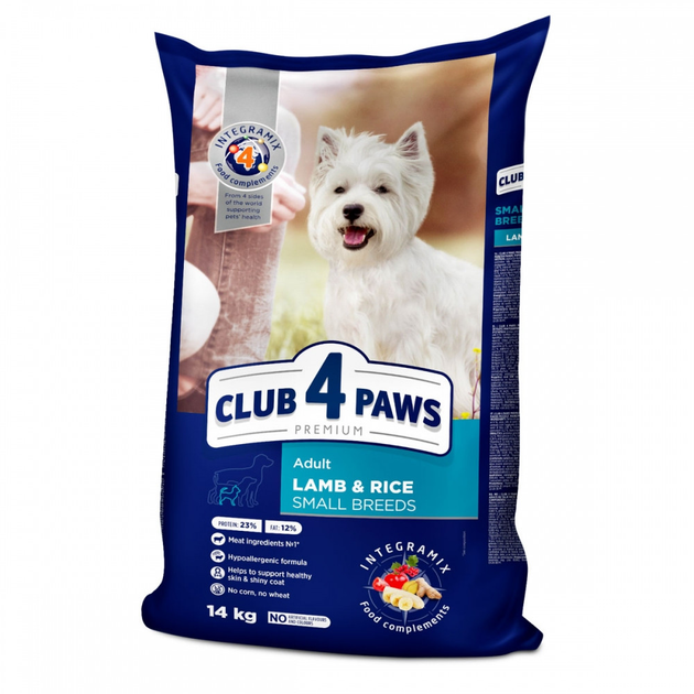 Сухий гіпоалергенний корм Club 4 Paws (Клуб 4 Лапи) для собак малих порід з ягням 14 кг