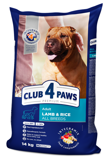 Сухий гіпоалергенний корм Ягня і рис для собак всіх порід 14 кг CLUB 4 PAWS Клуб 4 Лапи