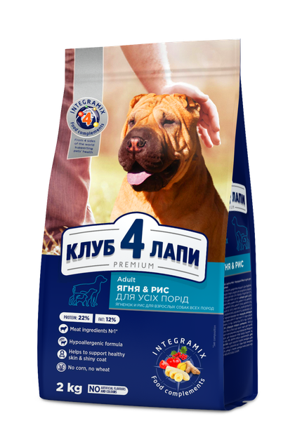 Сухий гіпоалергенний корм Ягня і рис для собак всіх порід 2 кг CLUB 4 PAWS Клуб 4 Лапи